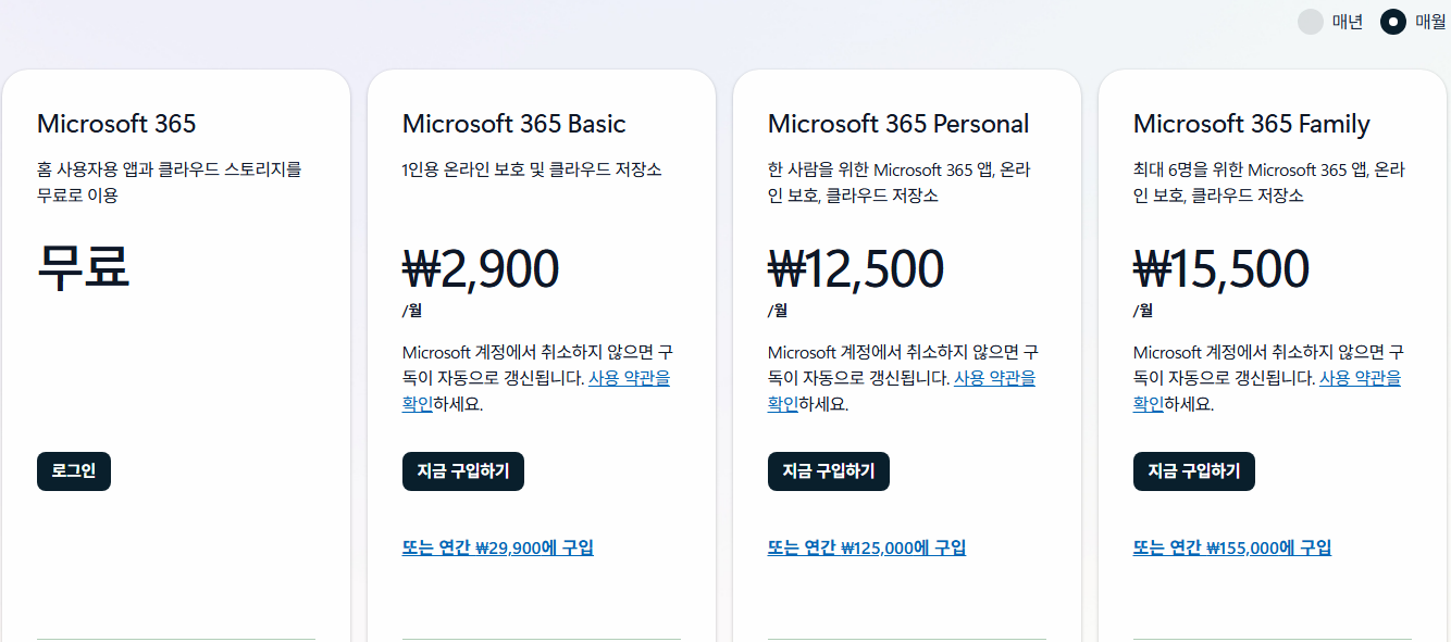 - 유료 플랜: 100GB 또는 1TB (365 포함)