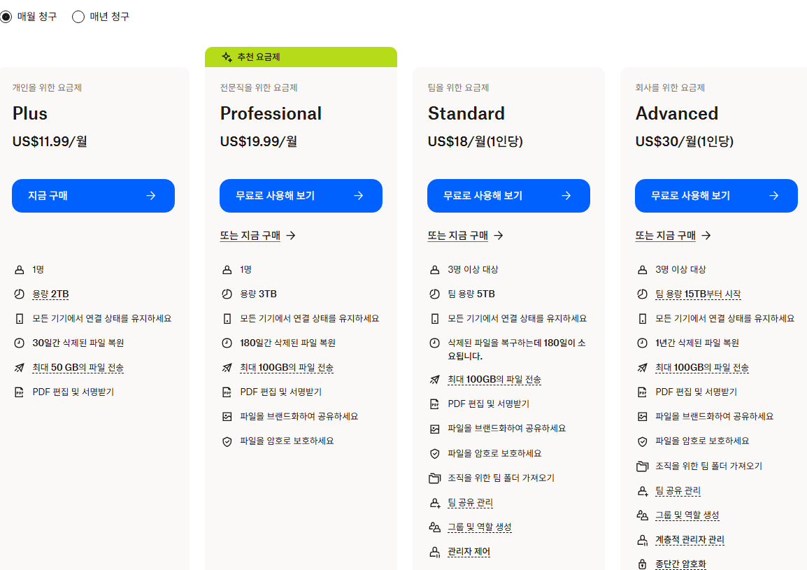 먼저 무료 플랜으로 사용해 본 뒤 용량이 부족할 때 업그레이드하는 것이 가장 합리적인 방법입니다.